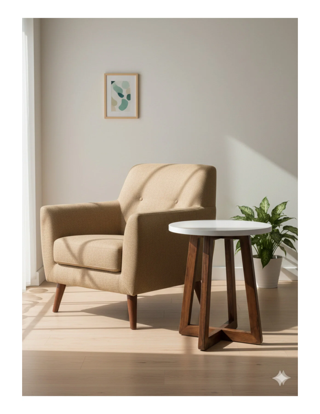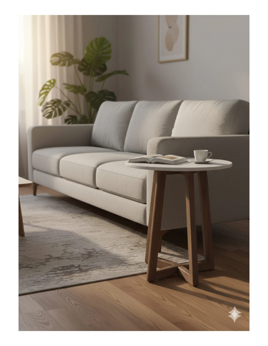 Modern, İskandinav ve minimal dekorasyon tarzıyla uyumlu olan bu yan sehpa; salon, oturma odası, yatak odası, balkon ve ofis gibi birçok alanda rahatlıkla kullanılabilir. Koltuk yanı sehpası veya dekoratif tamamlayıcı olarak tercih edilebilir.